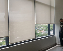 Способы установки: Способ установки рулонной шторы ТУТ. Конструкция позволяет крепить штору на раму без сверления, а также монтировать на стену, потолок, створки, ниши, на деревянные или пластиковые рамы.