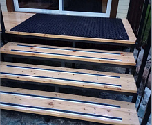 Способ монтажа: алюминиевый порожек без вставки крепится в проем между двумя напольными покрытиями или на ступени при помощи саморезов (идут в комплекте). Затем прорезиненную ПВХ вставку нужно нагреть строительным или обычным феном, либо подержать в горячей воде, чтобы материал стал мягче и легче вошел в паз профиля.